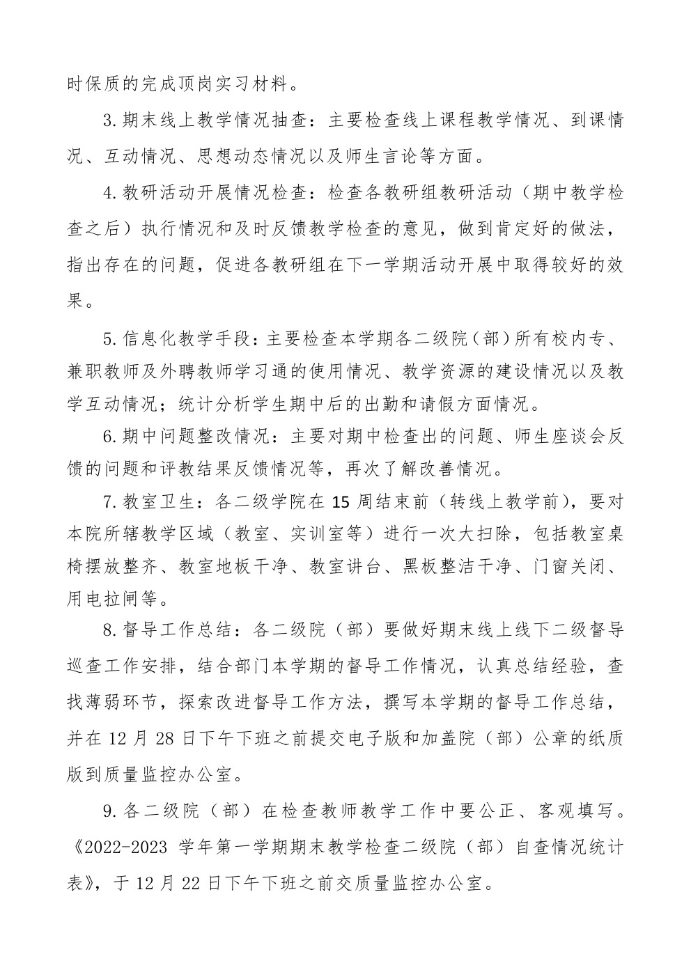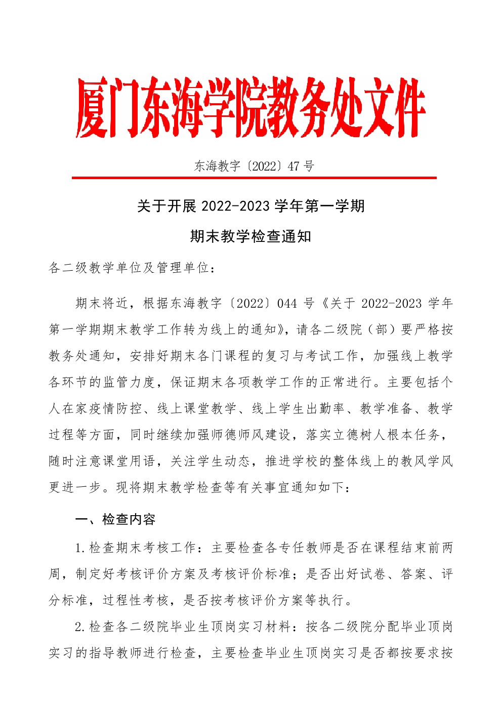 东海教字〔2022〕47号 关于开展2022-2023学年第一学期期末教学检查通知