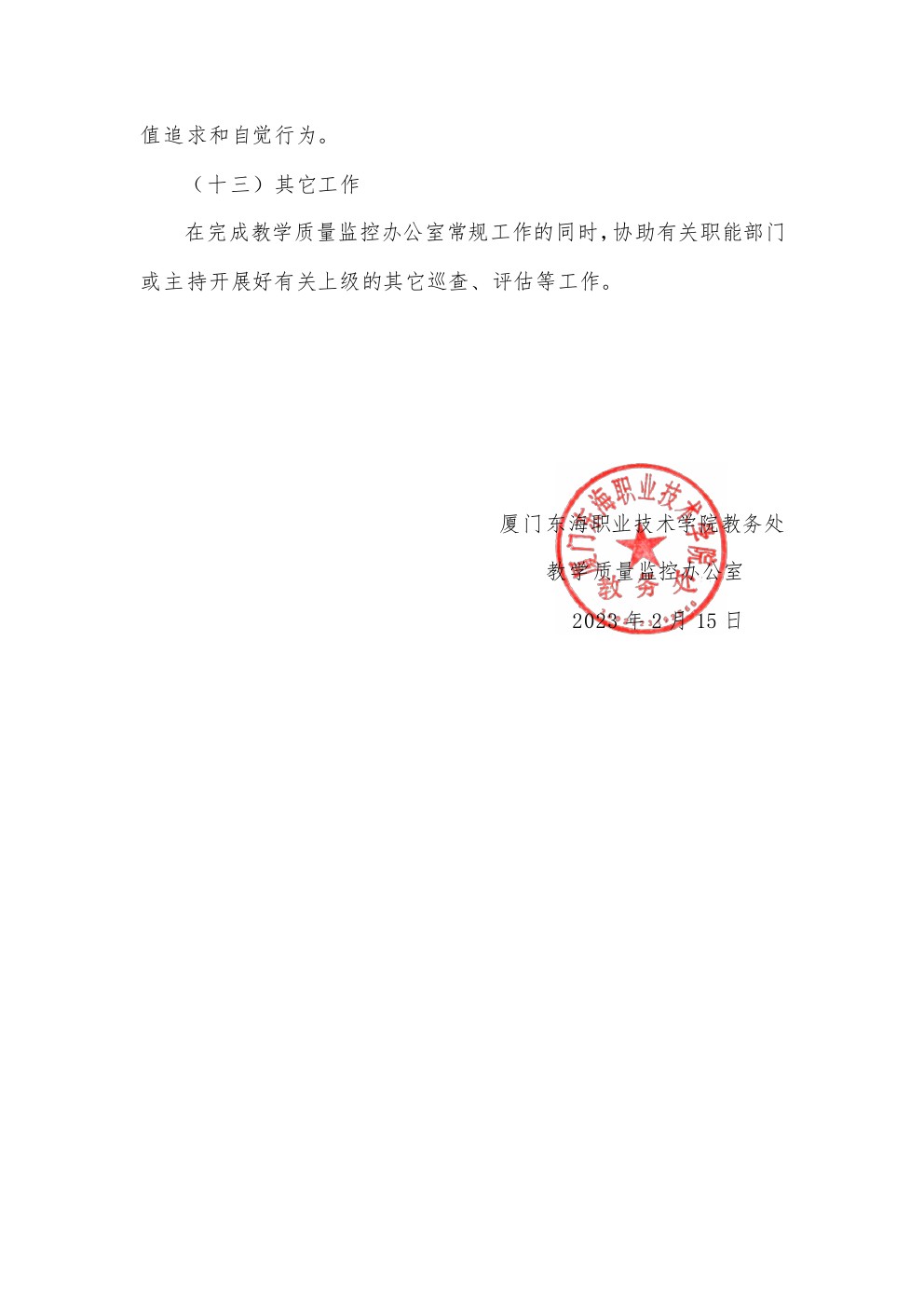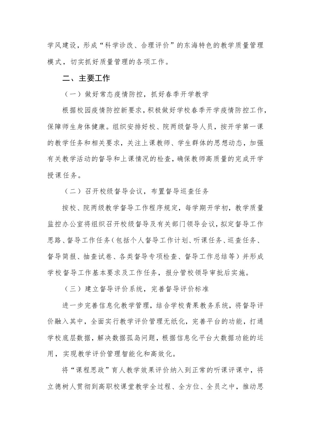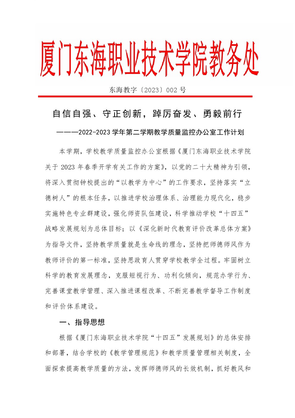 东海教字〔2023〕002号 2022-2023学年第二学期教学质量监控办公室工作计划