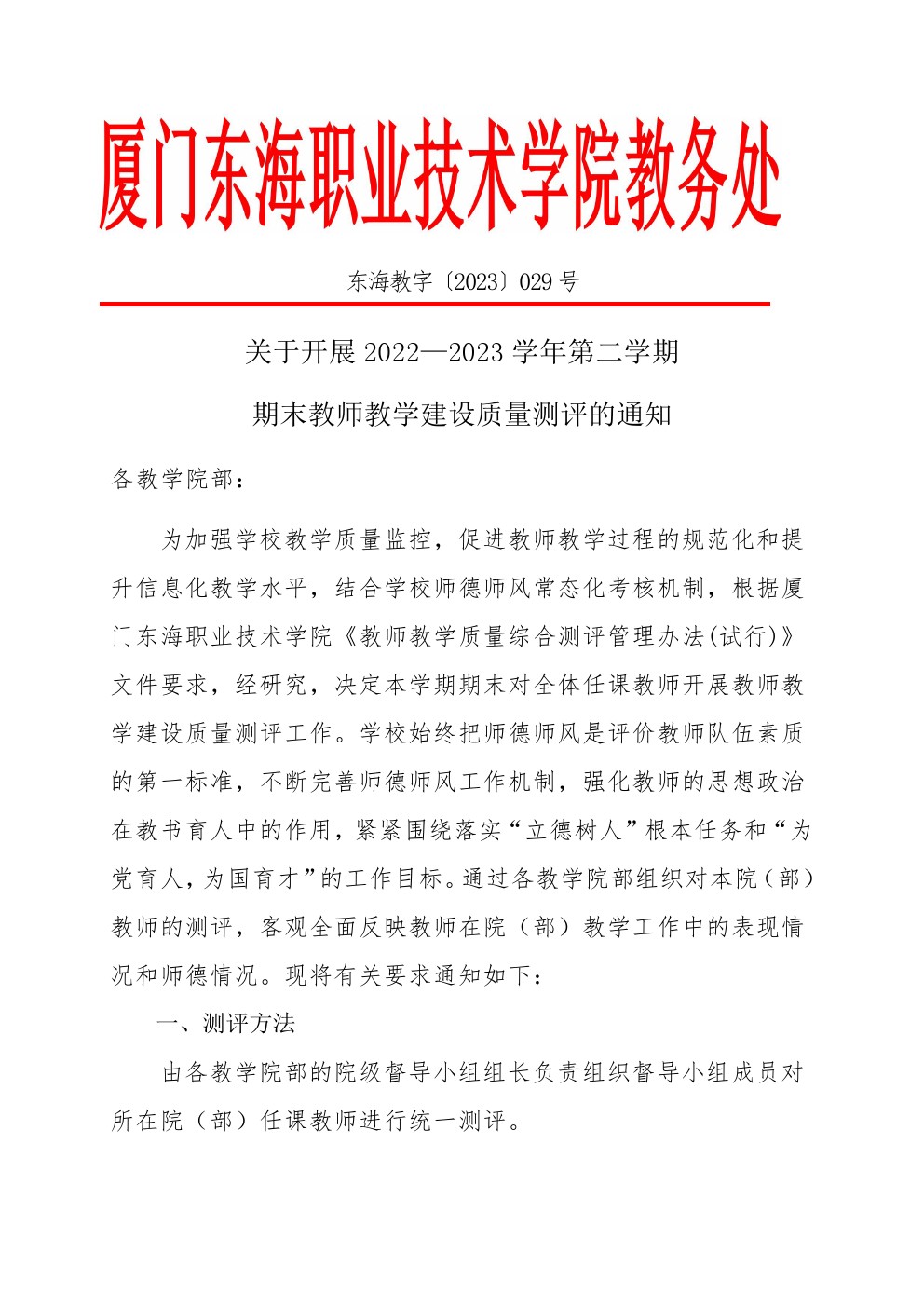 东海教字〔2023〕029号 关于开展2022-2023学年第二期期末教师教学建设质量测评的通知