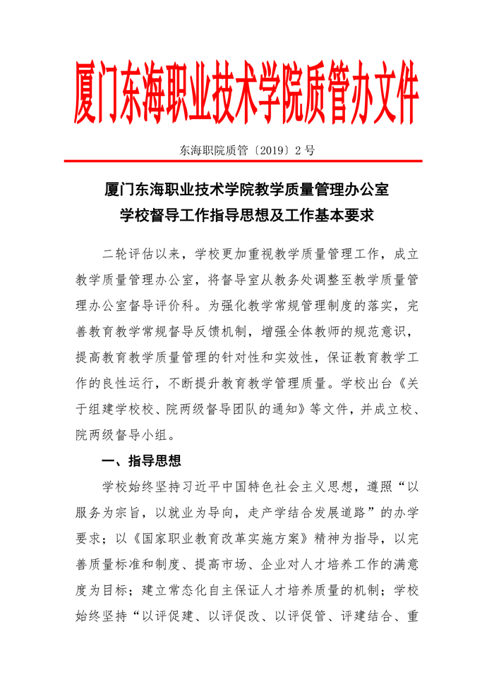 东海职院质管[2019]2号——学校督导工作指导思想及工作基本要求