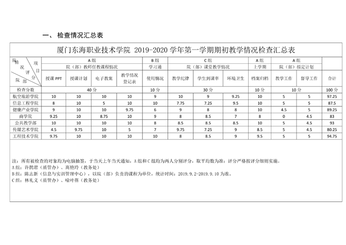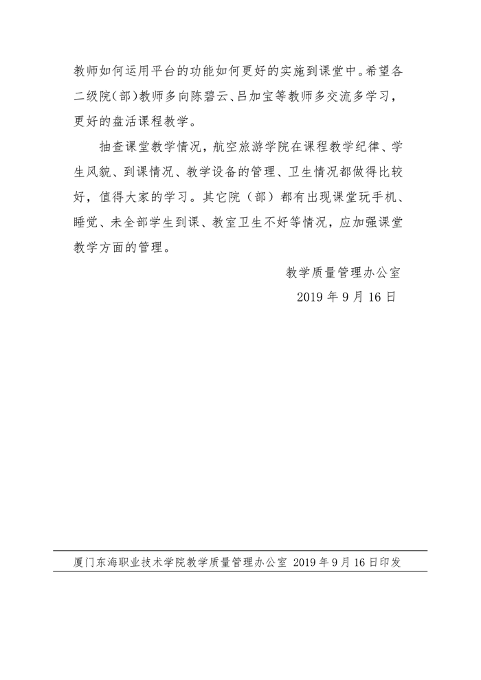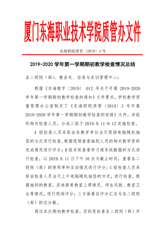 东海职院质管[2019]4号——2019-2020学年第一学期期初教学检查情况总结
