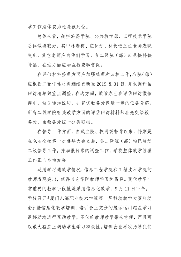 东海职院质管[2019]3号——开展2019-2020学年第一学期期初教学检查的安排