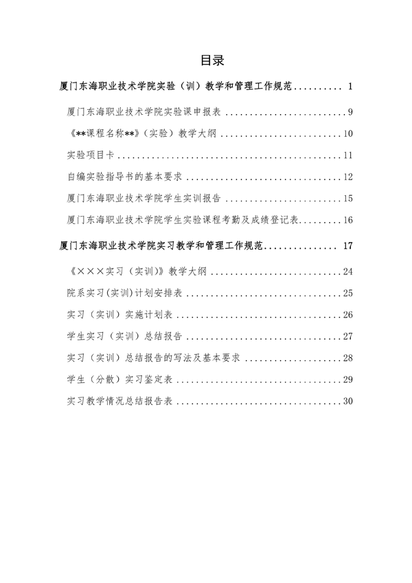 厦门东海职业技术学院实践教学规范汇编