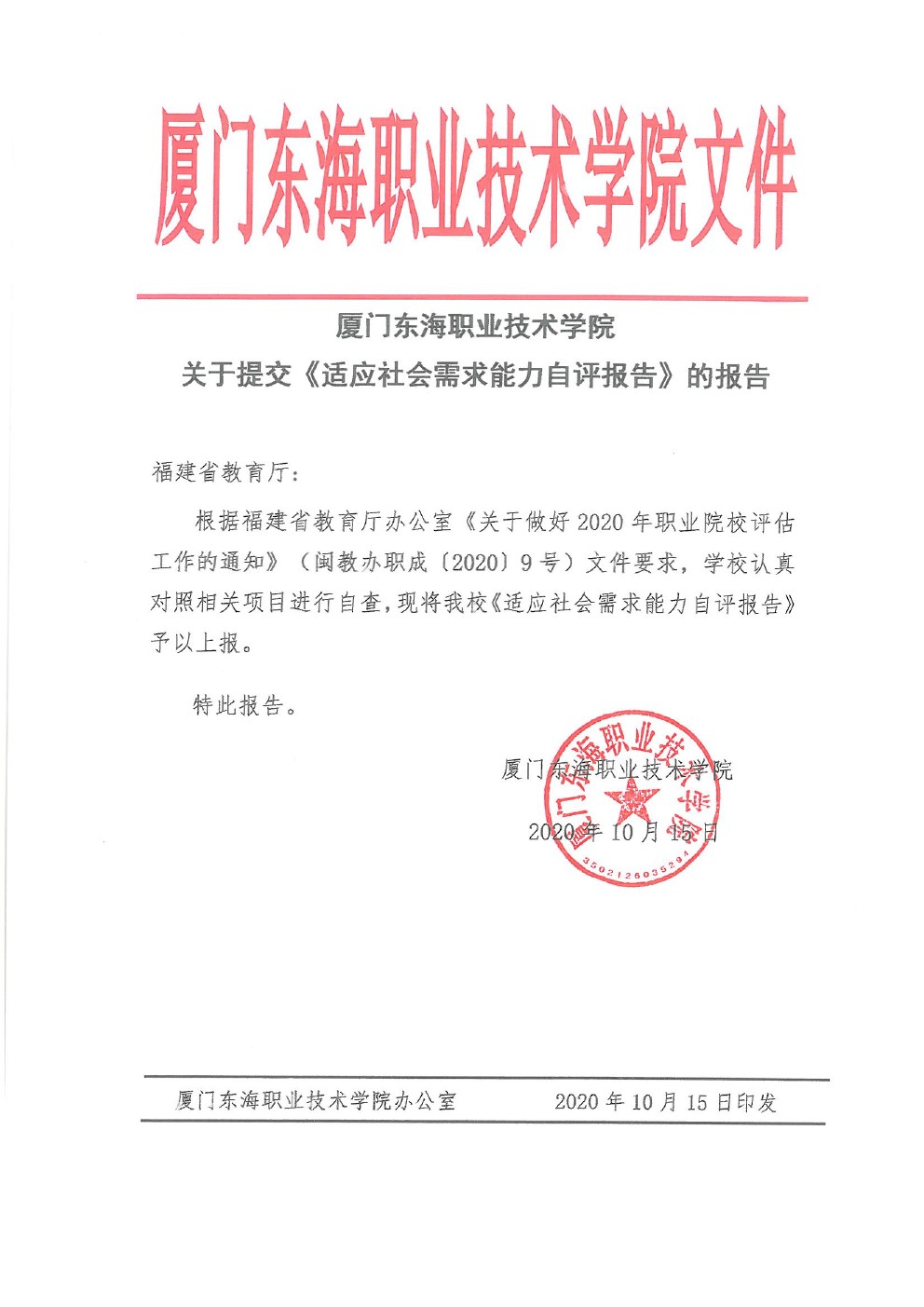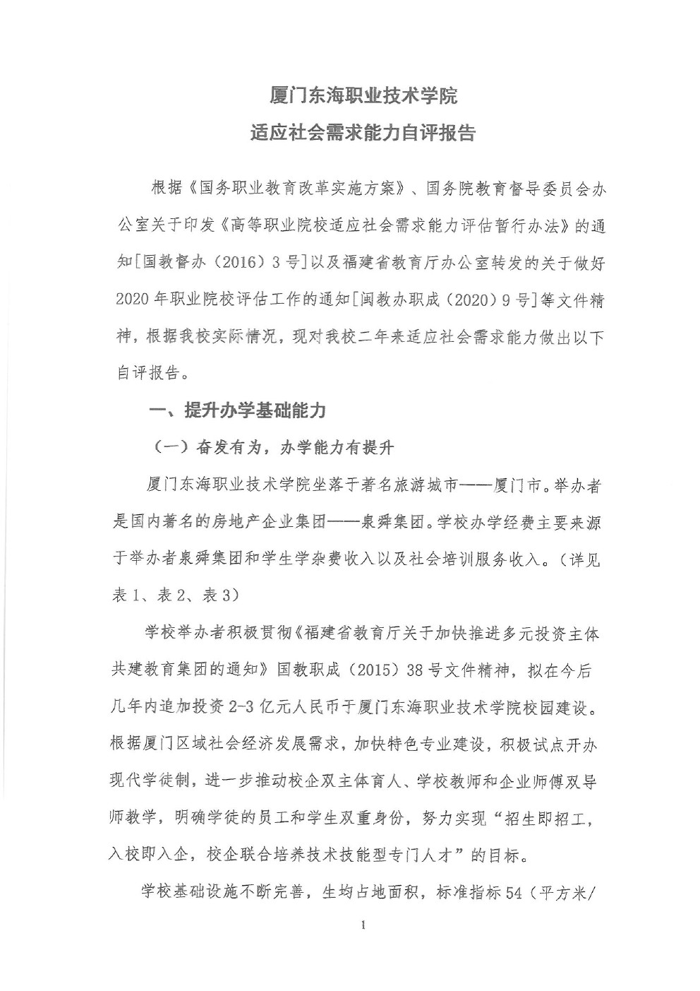 厦门东海职业技术学院适应社会需求能力自评报告(2020)