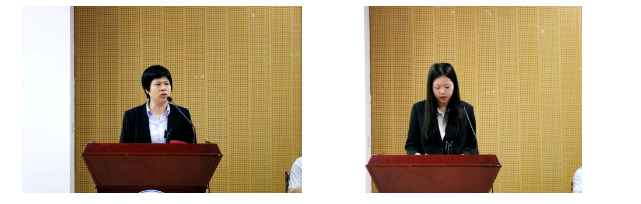 学校技能竞赛评委代表谢彩云老师、参赛学生代表杨冬霞同学分别就评委工作和比赛行为作出表态。