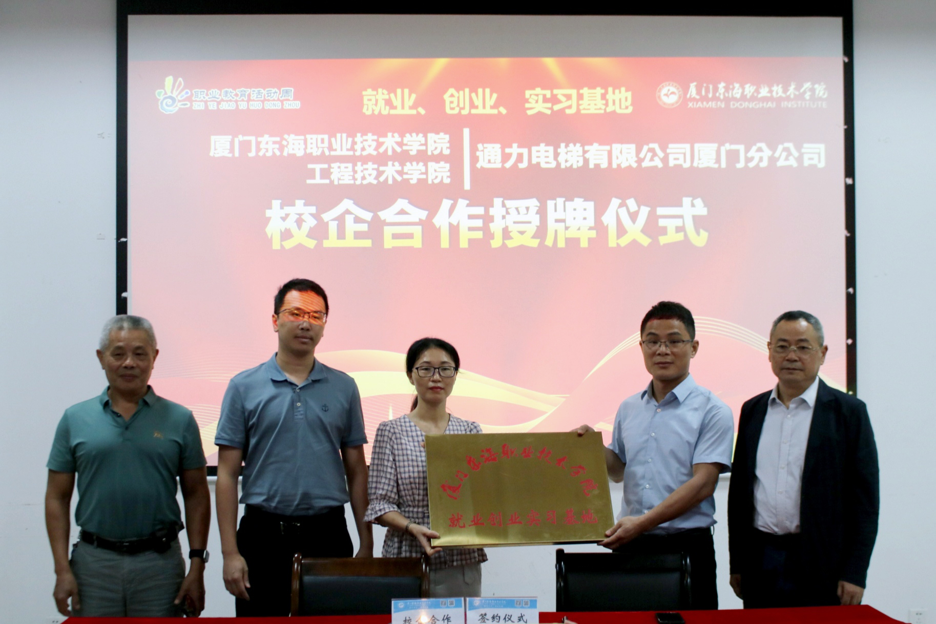 开幕式上,通力电梯工程有限公司厦门分公司、厦门同安希尔顿花园酒店、中国大地财产保险股份有限公司厦门分公司、厦门市银城药店有限公司、厦门市同安区禹洲艾肯幼儿园、厦门柏利雅设计装饰工程有限公司的企业代表分别与我校签订了校企合作协议,并举行了校外实训基地授牌仪式。