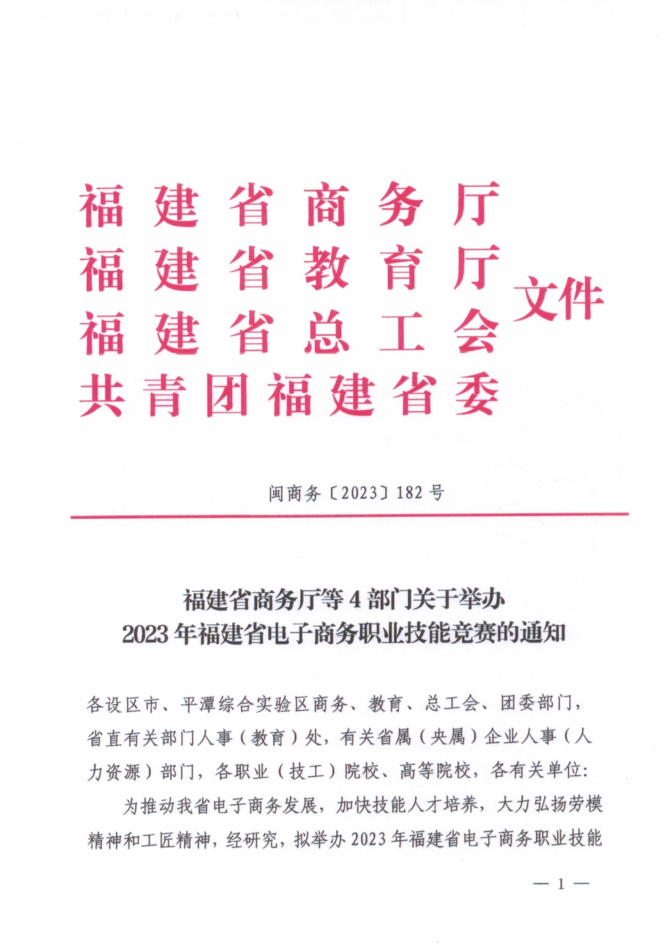 闽商务〔2023〕182号福建省商务厅等4部门关于举办2023年福建省电子商务职业技能竞赛的通知.pdf