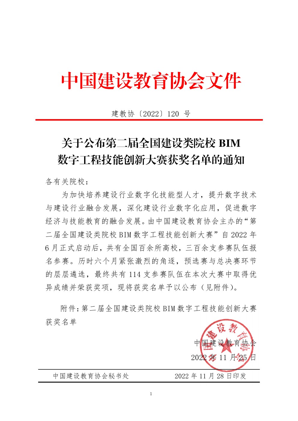 建教协〔2022〕120 号 关于公布第二届全国建设类院校BIM数字工程技能创新大赛获奖名单的通知.pdf