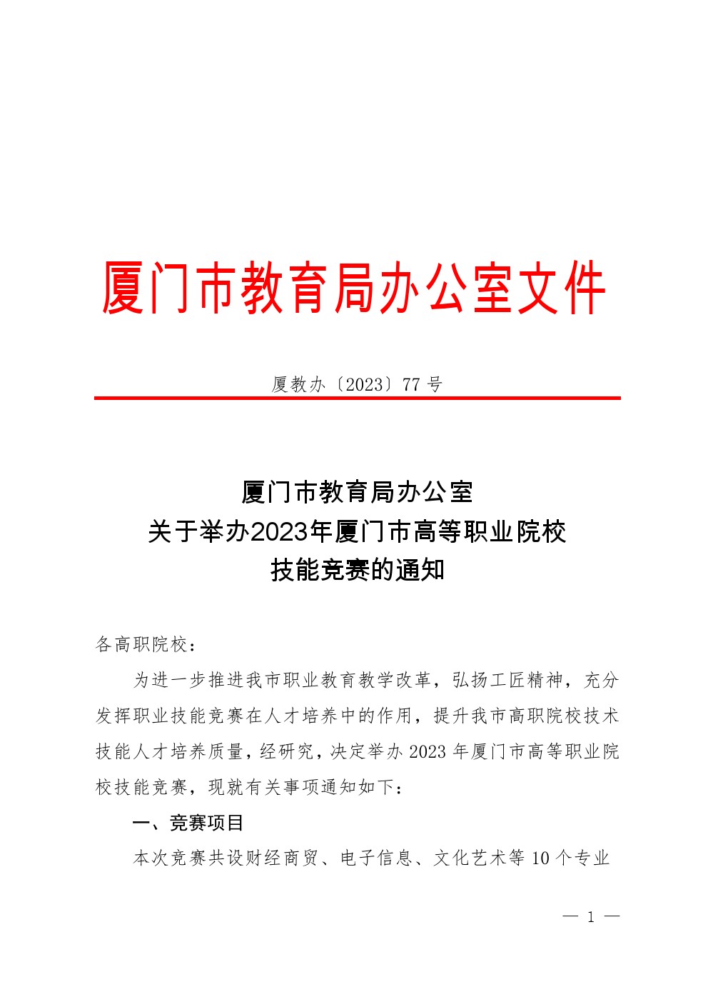 厦教办〔2023〕77号关于举办2023年厦门市高等职业院校技能竞赛的通知.pdf