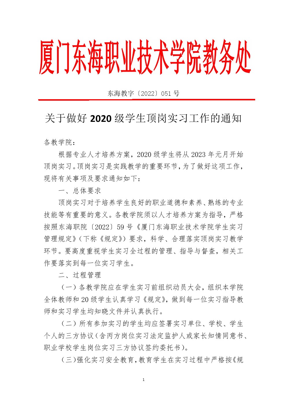 东海教字[2022]051号 关于做好2020级学生顶岗实习工作的通知.rar