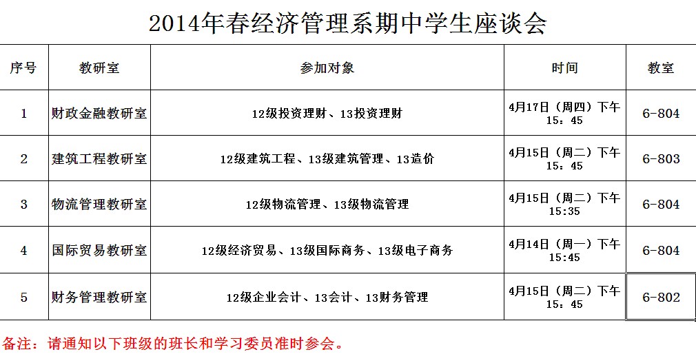[组图]关于举办2014年春经济管理系期中学生座谈会的通知