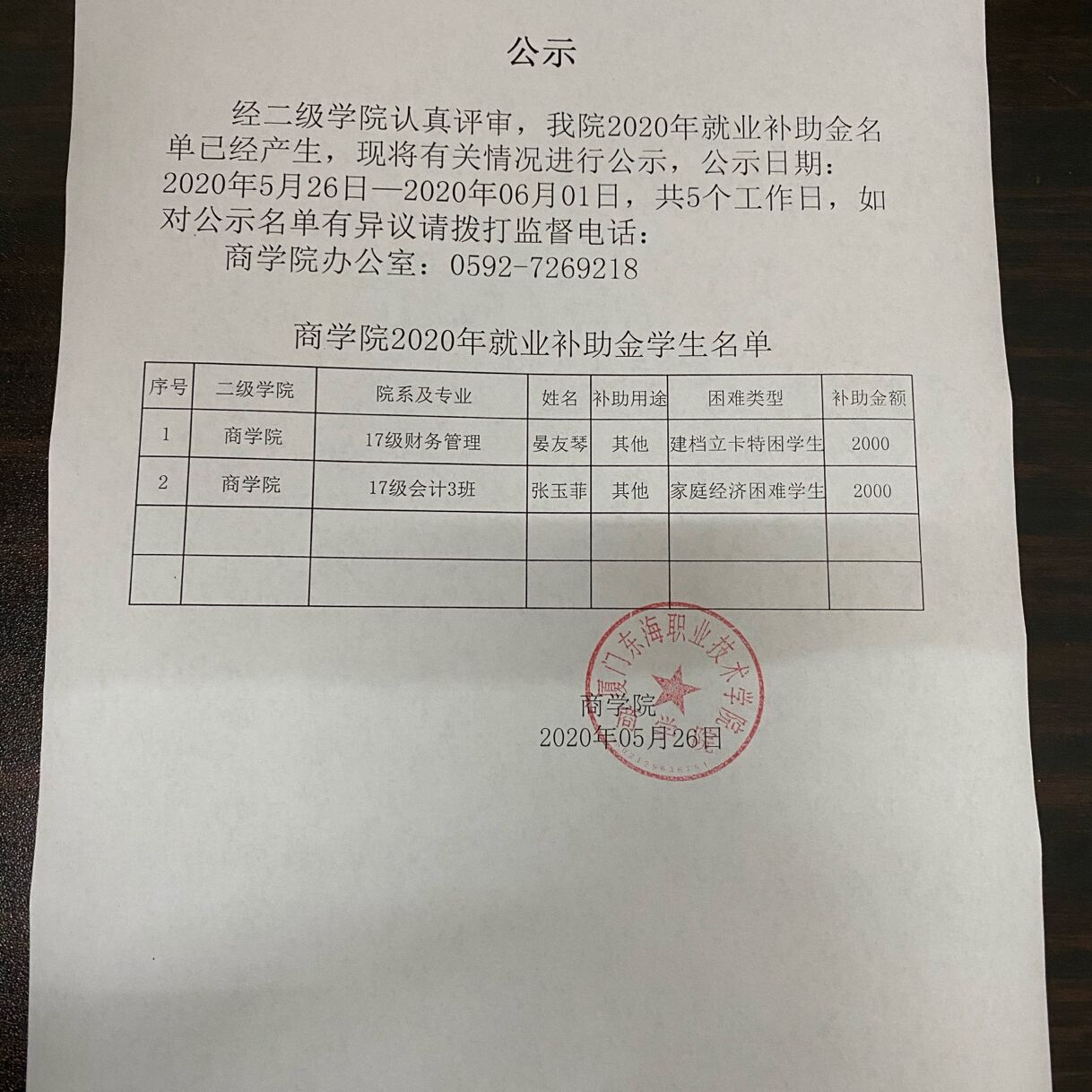 商学院关于取消孙浩、卢滢、卢一涵三位同学2019-2020学年国家助学名单的公示