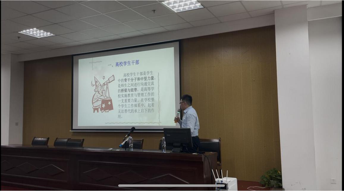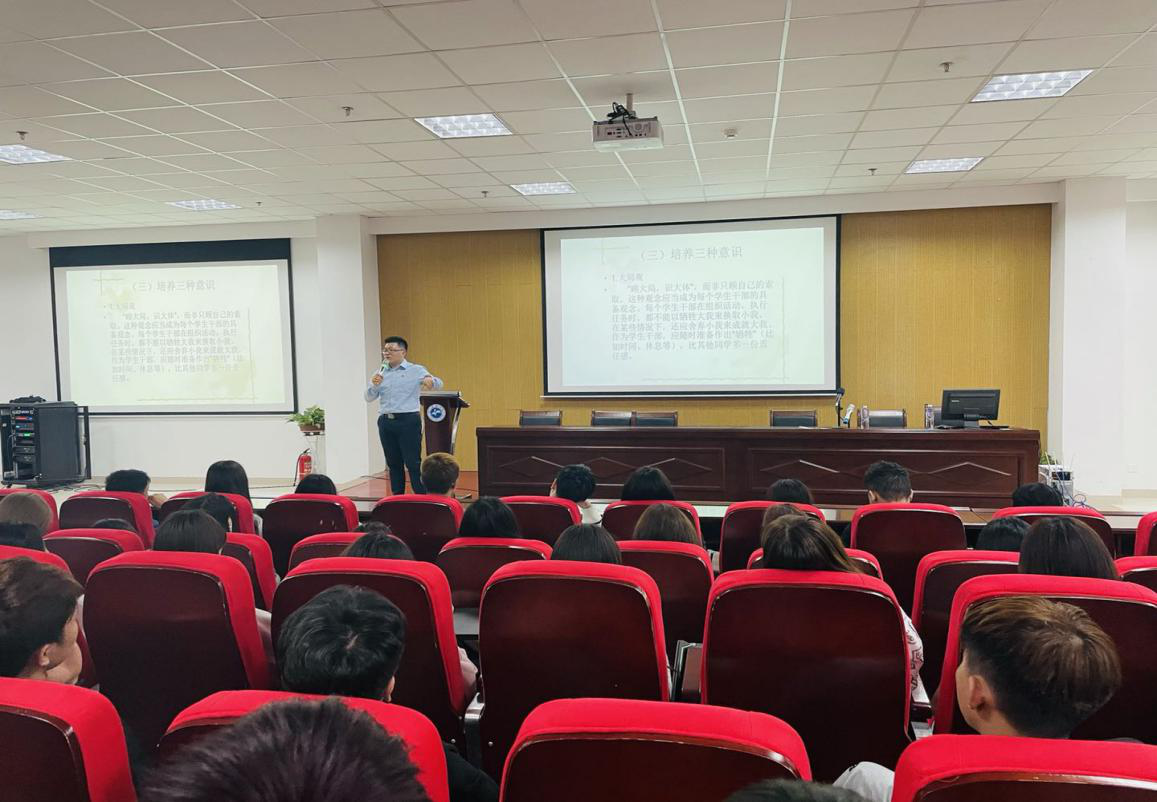 潘方华老师认为学生干部应具备的素质:较高的思想觉悟水平,加强自身修养,培养三种意识(大局、服从、反馈、)以及学生干部应具备的行动和学习能力。 随后,潘方华老师进行具体的工作案例分析,让同学们能更直观地明白在工作中需要注意的事项。此外,潘方华老师还说到: “不要做碌碌无为的学生干部,要大胆创新”,因此,他鼓励同学们 要创新工作方式,用最佳的状态服务好学生和班级。