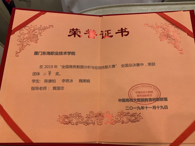 我院学子斩获2019年全国高职院校商务数据分析与应用技能总决赛二等奖
