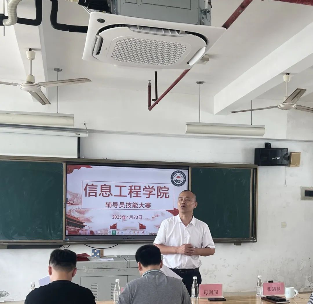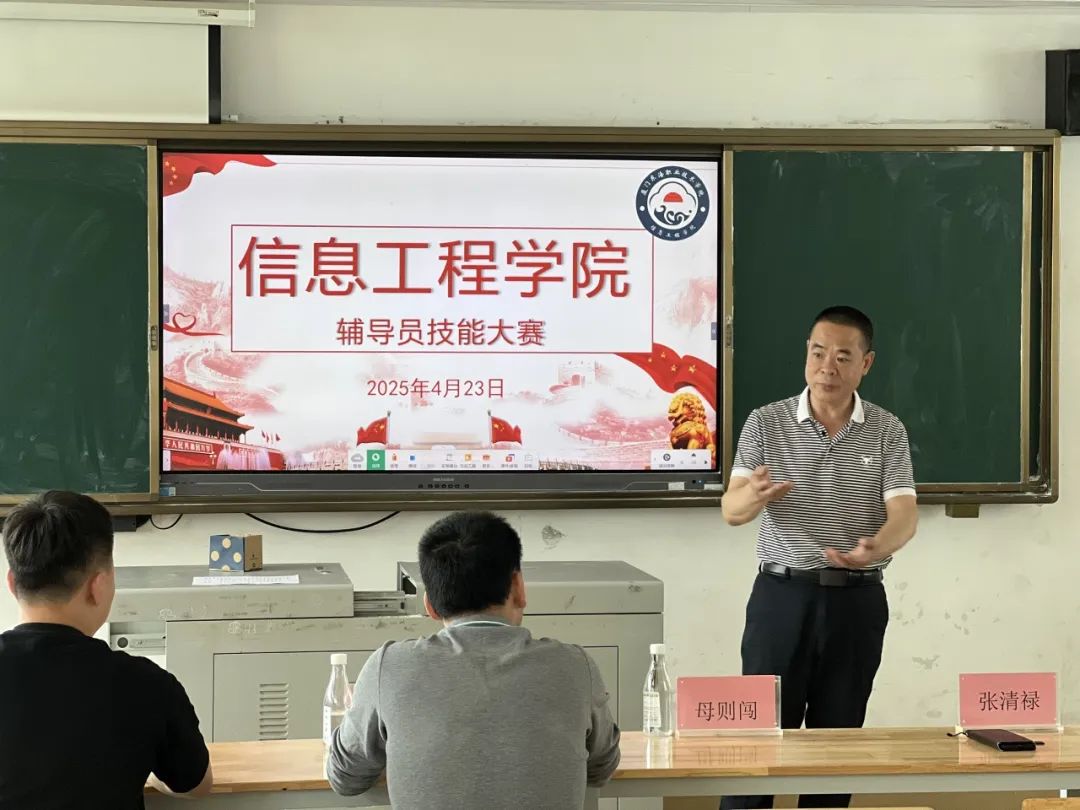 添加时间:2025-04-24为提升学院辅导员专业素养,加强育人能力,通过模拟真实工作场景,让辅导员在实践中提升能力,促进交流与学习。特此举办“信息工程学院辅导员技能大赛”。出席本次大赛的评委及嘉宾老师有:学工处处长母则闯老师、信息工程学院院长张清禄老师、学工处处长助理兼宿管中心主任陈志峰老师、学工处思政科洪畅老师、信息工程学院院长助理政娜老师、工程学院院长助理林德明老师、教师教育学院院长助理曾丽燕老师。