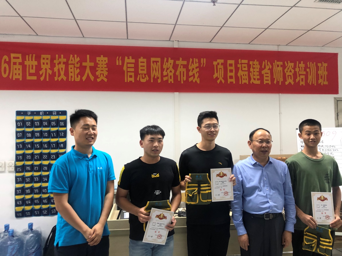 我院林南铭老师和郑鄂湘老师在培训过程中表现突出,分别在非屏蔽电缆及信息模块端接和屏蔽电缆端接项目中获得冠军。