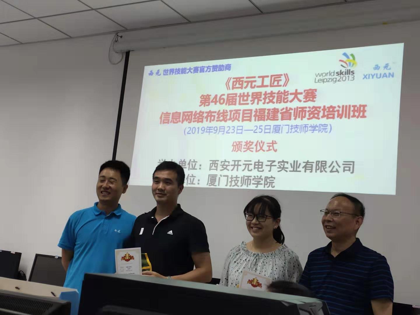 2019年9月23日,第46届世界技能大赛“信息网络布线”项目福建省师资培训班于厦门技师学院顺利开班,本次培训班由西安开元电子实业有限公司主办,厦门技师学院协办。参加本次开班仪式的领导和嘉宾有:厦门技师学院副院长阮义聪、厦门技师学院学院信息与文化创意系主任马赞玮、西安开元电子实业有限公司董事长王公儒教授级高级工程师、厦门云同科技有限公司总经理曾贵福。阮义聪副院长和王公儒董事长作重要讲话。