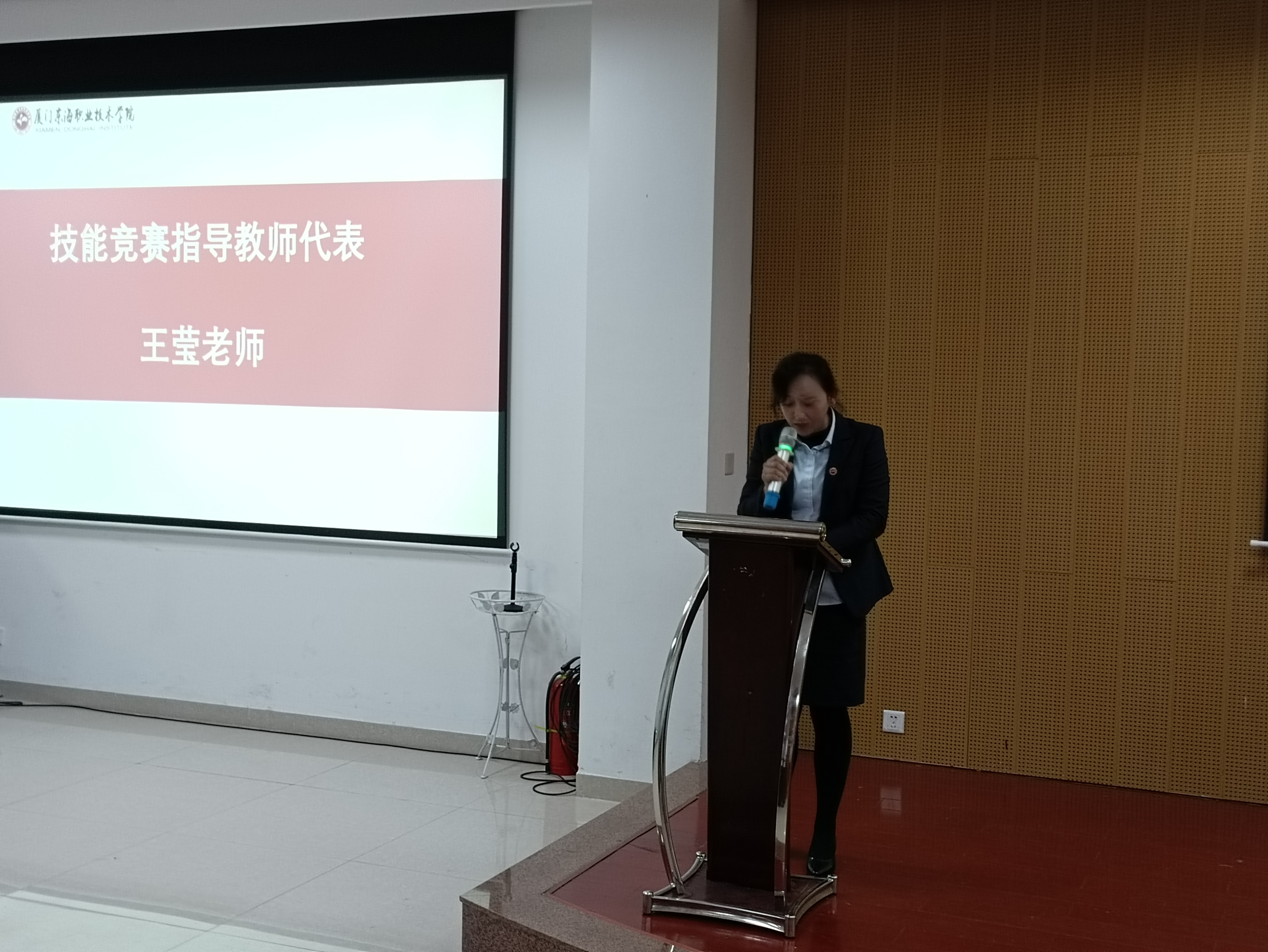 添加时间:2022-01-032021年12月31日我校召开2021年度教学工作会议,会议总结了2021年度我校教学工作情况。会上我院王莹副院长代表我校技能竞赛获奖教师发言。2021年我院在教学管理、技能竞赛、专业建设等方面取得了良好的成绩,先后取得了厦门市高职院校技能竞赛物联网技术应用赛项获得第二名一等奖、厦门市高职院校技能竞赛信息安全管理与评估项目获得第二名二等奖的好成绩、厦门市高职院校技能竞赛电子商务技能赛项获得二等奖以及三等奖各一项、厦门市高职院校技能竞赛技能网络应用技术赛项获得三等奖、第二届全国大学生直播电商技能竞赛总决赛第一等奖等十余项荣誉。
