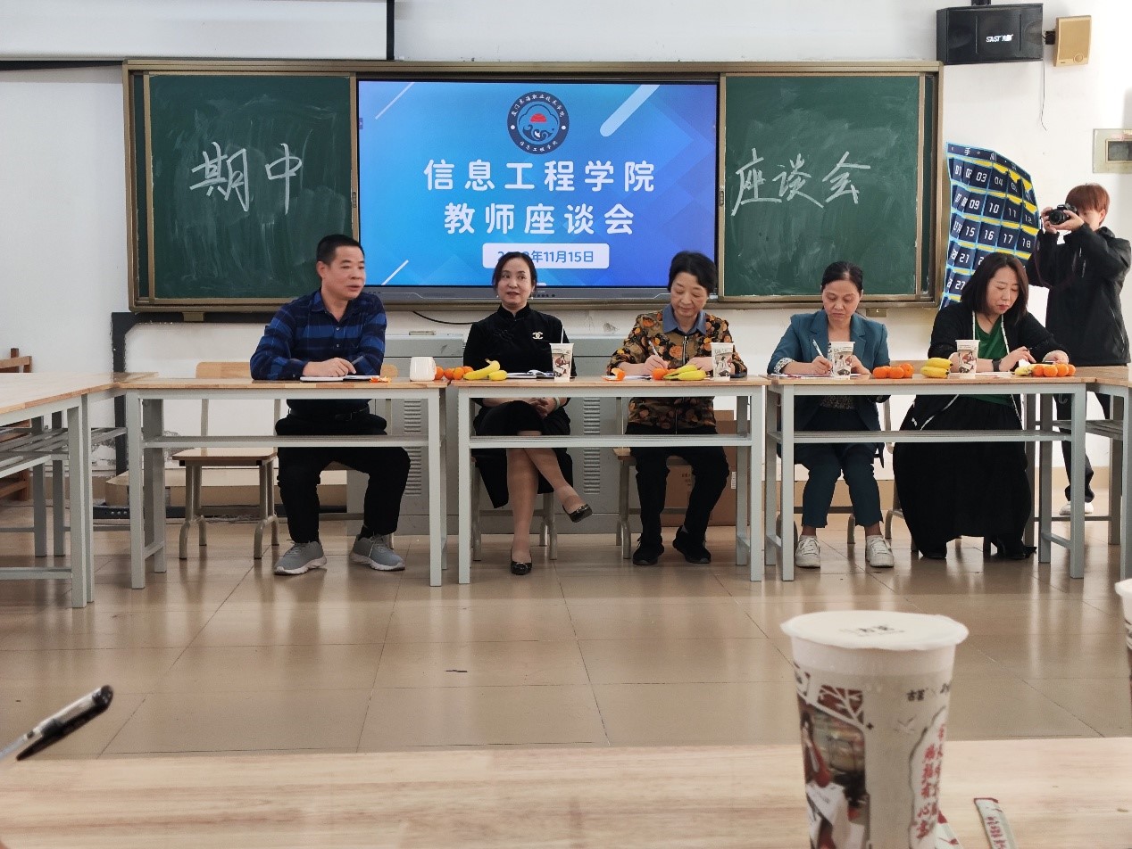 添加时间:2023-11-16为了持续提升信息工程学院教学管理水平和教师的教学能力,倾听老师在教学过程遇到的痛点,在接受学校期中教学质量检查的基础上,我院于11月15日下午在6-605教室举行了2023-2024学年第一学期期中教师座谈会。常务副校长宋艳春、教务处处长张艳雯、校级督导陈建尧、苏伟明老师以及全体信工教职工参与了此次座谈。