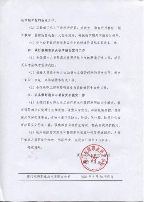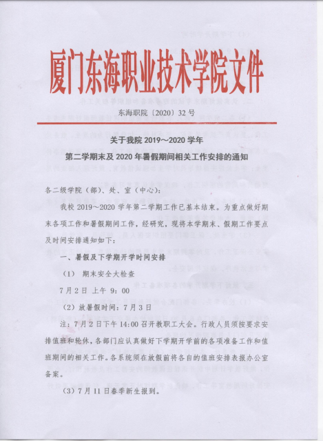 关于2019--2020学年第二学期期末及2020年暑假期间相关工作安排的通知