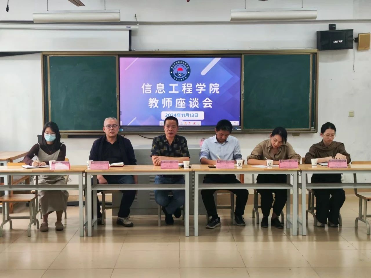 添加时间:2024-11-15为了进一步提升教师队伍的整体素质,促进教师间的相互学习与交流,在接受学校期中教学质量检查的基础上,信息工程学院于11月13日中午在6-605教室召开2024-2025学年第一学期的期中教师座谈会。党委委员吕明利老师、信息工程学院院长张清禄、数字信息工作处李汉明老师、教务处吴诗语老师,校督导黄彩燕老师及全体信息工程学院教职工参与了此次座谈。
