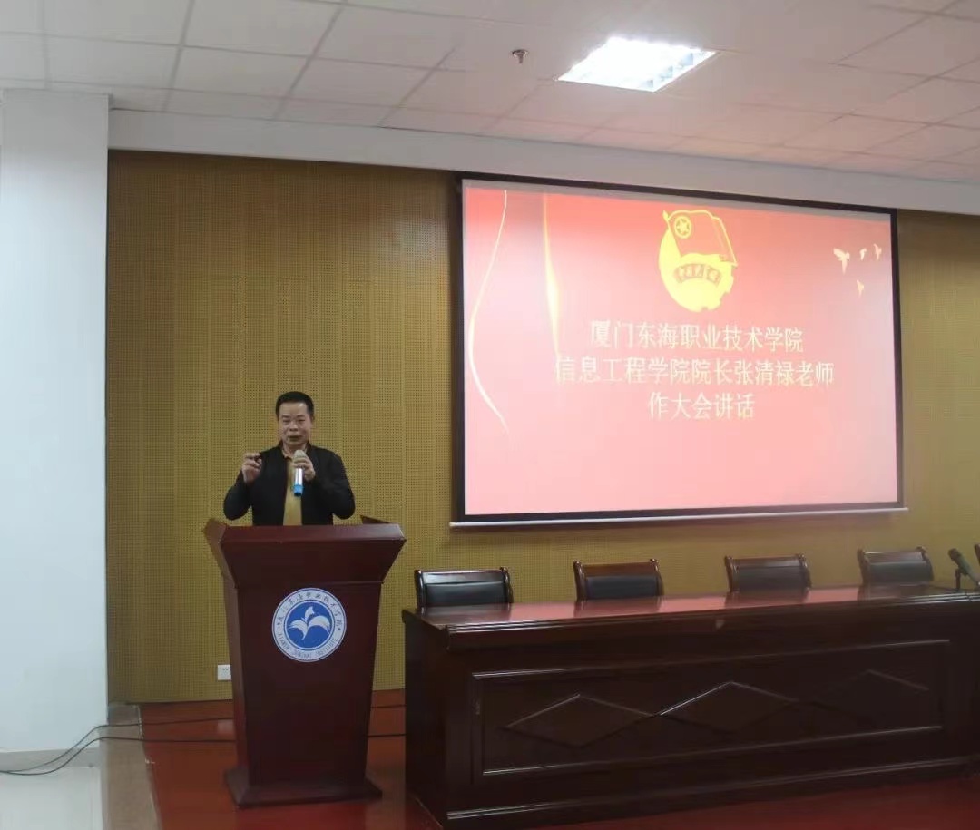 在庄严的国歌中,大会拉开了序幕,首先由信息工程学院院长张清禄老师致辞。之后由团委委员陈振清老师宣读有关允许信息工程分院开展团总支换届大会暨第十三届团代会的批复。十一位参与竞选的候选委员们展开激烈的竞选演讲,积极展现自己的精神面貌以及竞争优势,发表自己对新一届团总支做出明确的工作计划和目标。